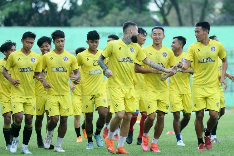 Pemain Arema FC sedang menjalani latihan. (Foto: Olenas.id/Arema FC)