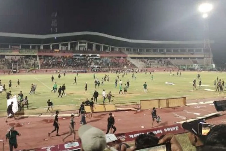 Dari video yang tersebar di media sosial, puluhan Bonek masuk ke lapangan begitu pertandingan usai. Mereka merusak sejumlah fasilitas seperti aboard dan menggulingkan bangku cadangan.