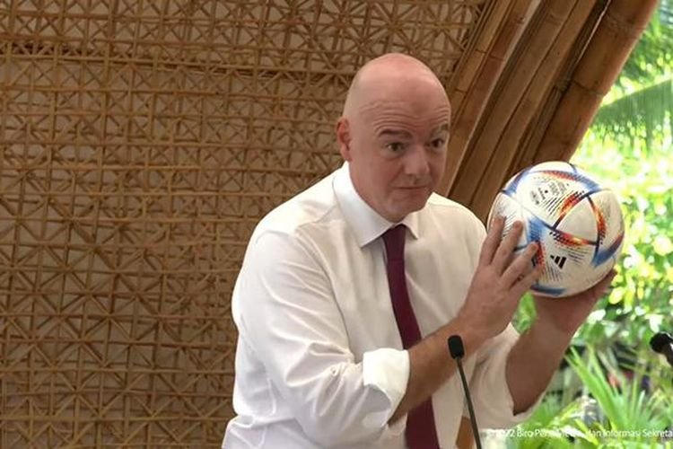 Seruan ini disampaikan Presiden FIFA, Gianni Infantino saat diberi kesempatan berbicara oleh Presiden Joko Widodo dalam jamuan makan siang kepala negara dan delegasi Konferensi Tingkat Tinggi (KTT) G-20 di Bamboo Dome, The Apurva Kempinski Bali, Nusa Dua, Bali, Selasa (15/11/2022).