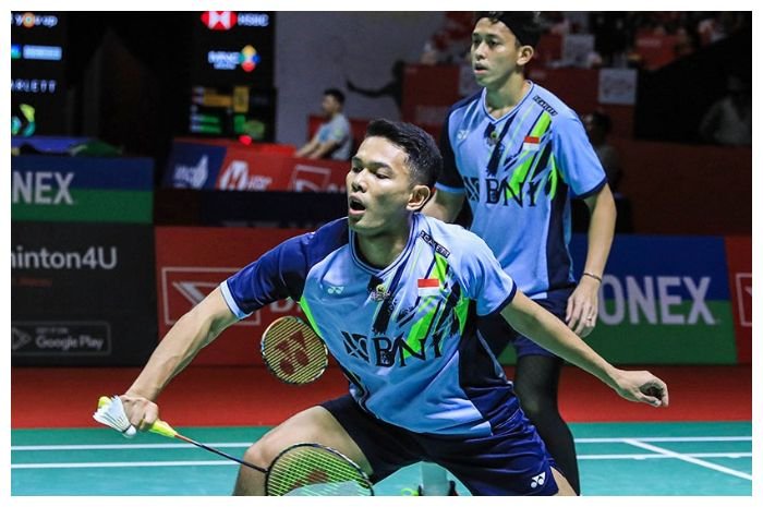 OLENAS.ID – Ganda putra Fajar Alfian/Muhammad Rian Ardianto dipaksa bekerja keras saat melawan rekan sendiri Pramudya Kusumawardana/Yeremia Yacob Rambitan di kejuaraan bulutangkis BWF World Tour Super 500 Indonesia Masters 2023 di Istora Gelora Bung Karno (GBK), Senayan, Jakarta, Selasa, 24 Januari 2023. Sebaliknya, ganda Kevin Sanjaya Sukamuljo/Marcus Fernaldi Gideon melewat babak pertama dengan mudah.