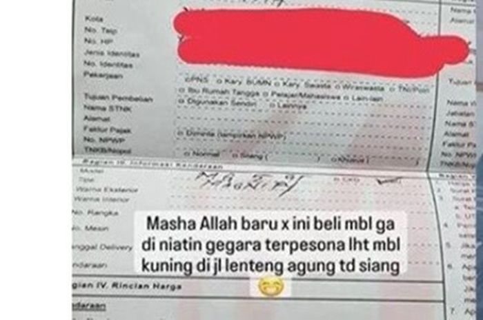 Di Instagram, isteri Esha dengan akun @vhia_esa mengungkapkan proses pembelian mobil itu, lengkap dengan struknya.