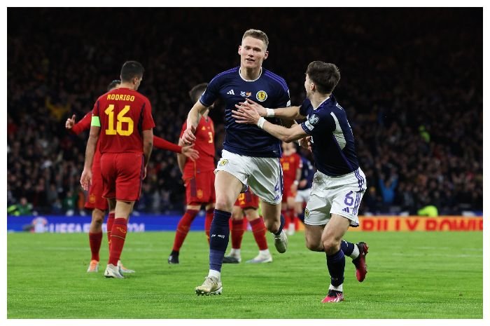 OLENAS.ID – Spanyol kehilangan posisinya di puncak klasemen Grup A setelah kalah 2-0 dari Skotlandia pada kualifikasi Piala Eropa 2024. Bintang Manchester United Scott Mc Tominay yang bikin Spanyol tumbang dalam duel di Hampten Park, Glasgow, Selasa, 28 Maret 2023 malam WIB.