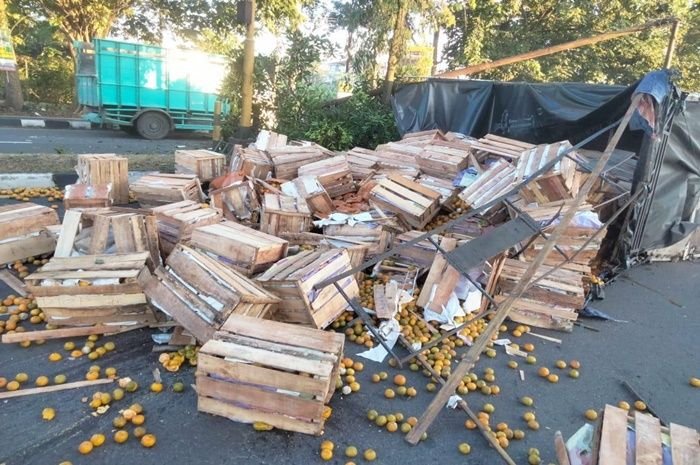 “Akibat kejadian, truk terbalik dan menutupi hampir separuh jalan. Selain itu jeruk yang dibawa truk tersebut juga berhamburan tumpah di jalan,” ujar Kusworo. ***