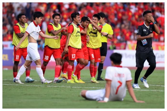 Dan, di masa injury time dengan tambahan waktu delapan menit, Indonesia U-22 sukses membuat kejutan dengan menjebol gawang Vietnam.