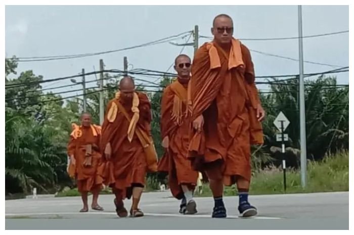 Para biksu sesungguhnya tak ingin viral. Mereka biasa berjalan kaki menempuh perjalanan ratusan atau bahkan ribuan kilometer menuju tempat peribadatan atau vihara untuk berdoa.