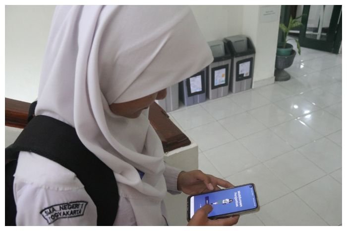 Salah satu siswa dari SMA Negeri 1 Yogyakarta Rheinida Oktavia Sugiyanto, melakukan screening kesehatan melalui aplikasi Mobscreen Penjarkes OLENAS.ID – Dinas Kesehatan Kota Yogyakarta gencar sosialisasikan keberadaan Mobile Screening Penjaringan Kesehatan atau Mobscreen Penjarkes. Sosialisasi diberikan kepada siswa SD, SMP hingga SMA yang ada di Kota Yogyakarta.