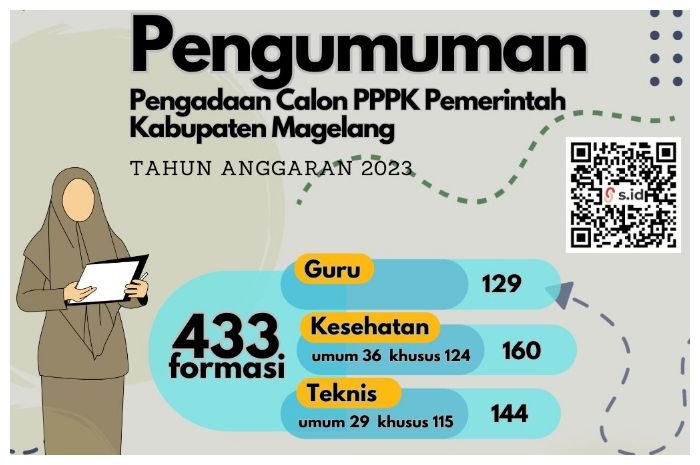 Informasi mengenai pendaftaran Calon PPPK Pemerintah Kabupaten Magelang, dapat dilihat melalui laman https://sscasn.bkn.go.id/, https://bkppd.magelangkab.go.id/, akun Facebook BKPPD Kabupaten Magelang (@bkppdmagelangkab) dan Instagram (@bkppdmagelangkab).